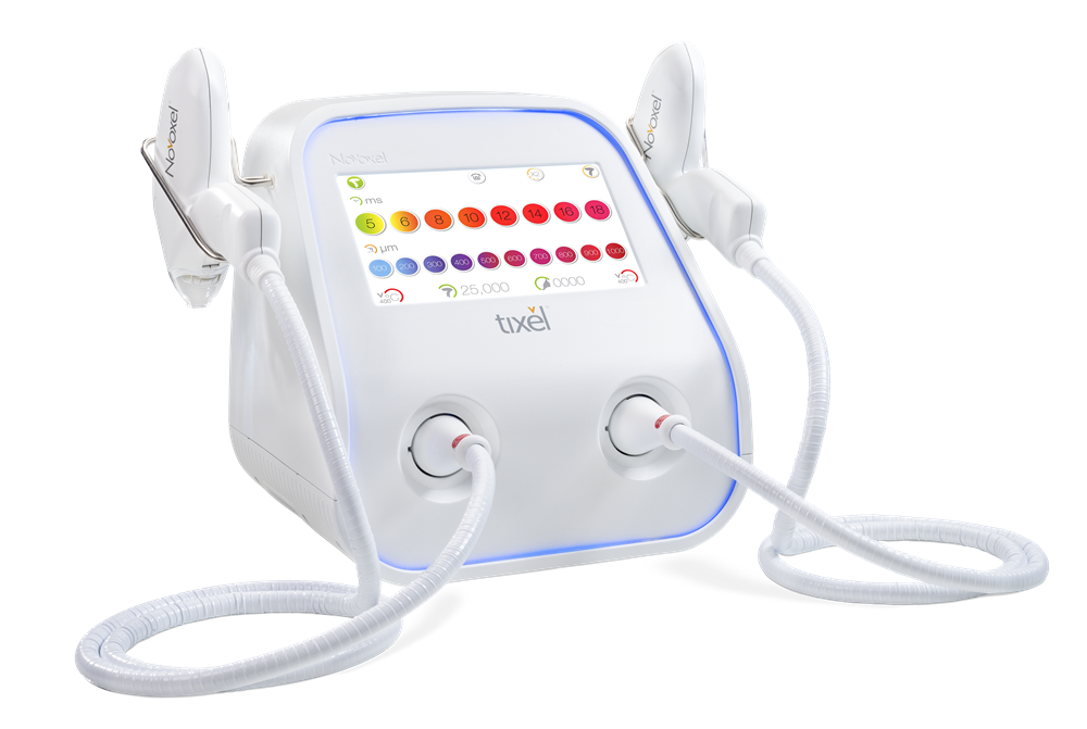 由醫師使用Tixel2探頭在皮膚上進行點狀治療。